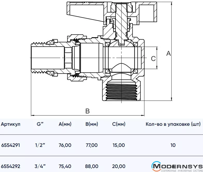 Кран шаровой с американкой 3/4" угловой бабочка ASG+