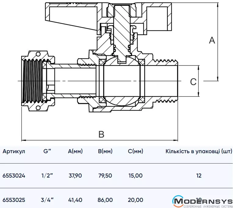 Кран шаровой с американкой 3/4" прямой бабочка ASG+