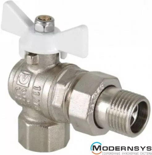 Угловой шаровой кран с полусгоном, белой ручкой и резьбой внутренняя/наружная Valtec Base VT.228.NW