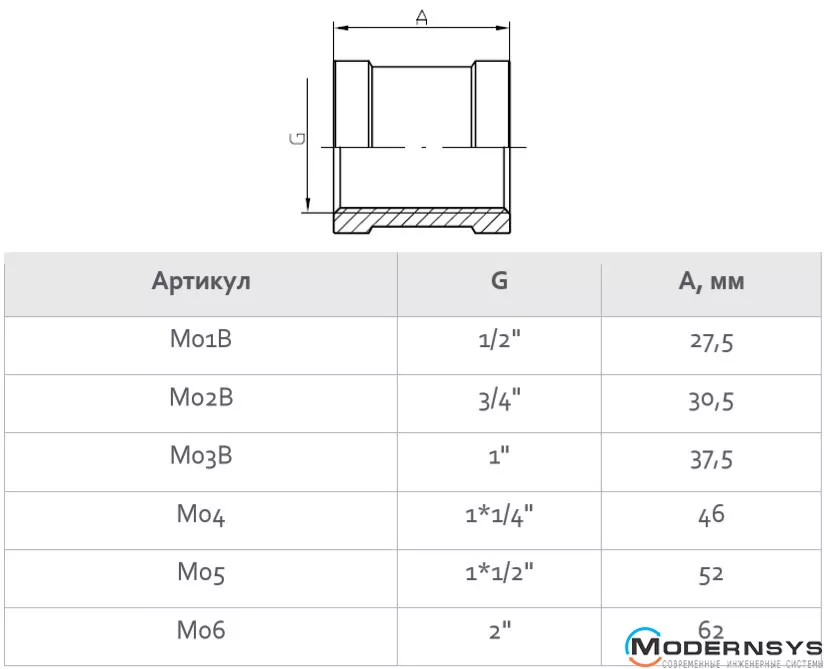 Технические характеристики: Латунь FADO (Фадо) муфта 1"