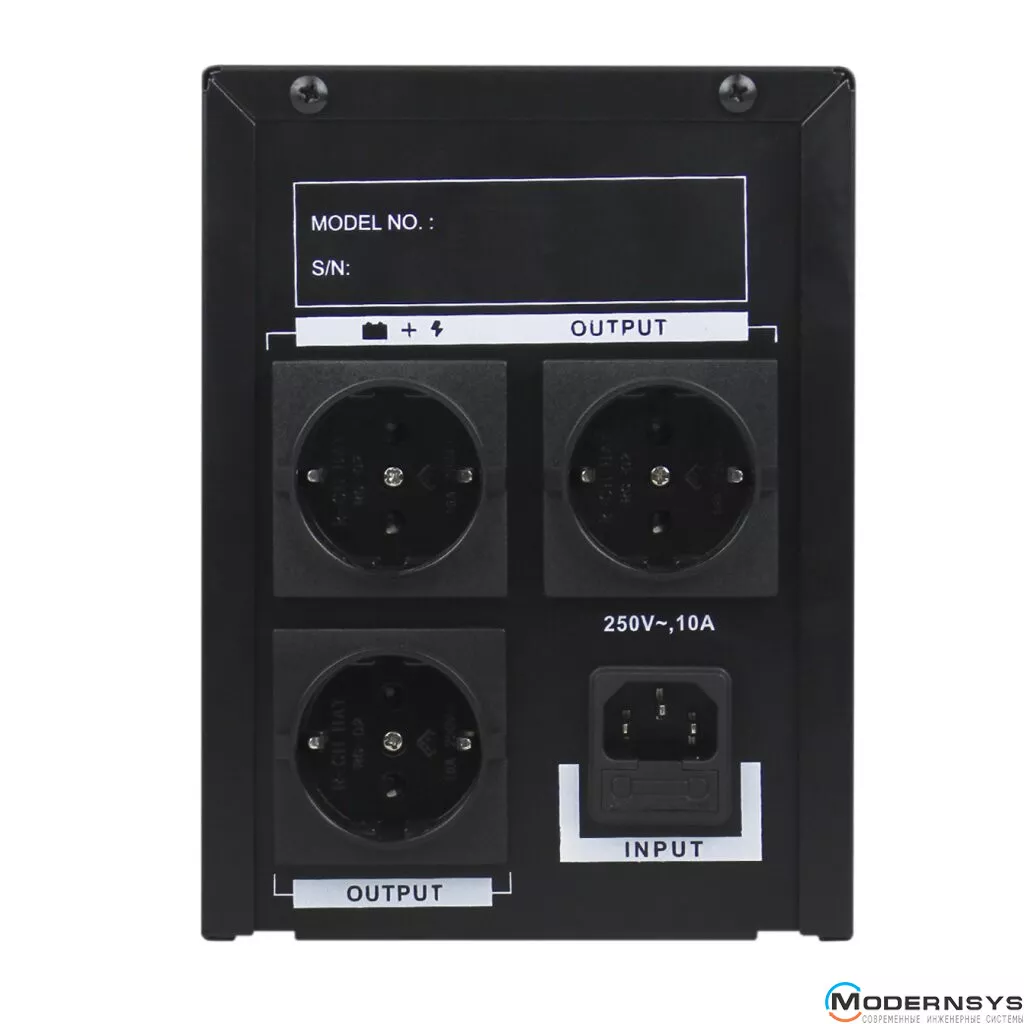 Устройство надежно защищено от коротких замыканий, резких скачков напряжения в сети, перегрузок по току, разряда и избыточного заряда батарей. Автоподзарядка аккумуляторов (2х 12V; 9Ah) в выключенном состоянии. 3 евророзетки.