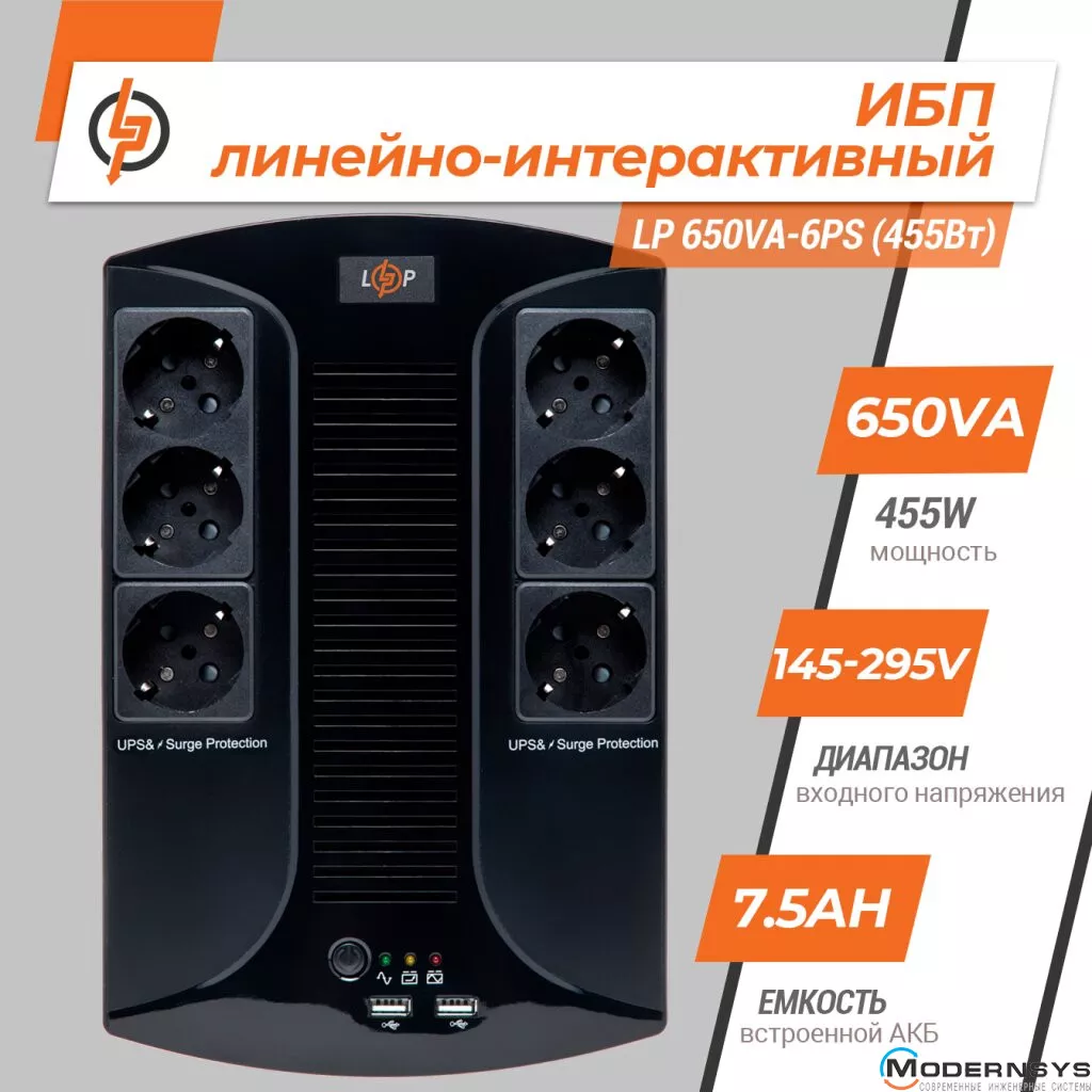 Источник бесперебойного питания (ИБП) LP 650VA-6PS (455Вт)