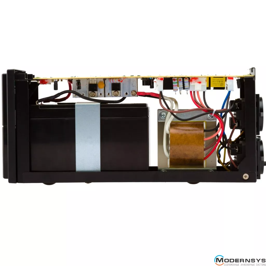 Входное напряжение 145-290 V преобразовывается до величины 220±10% V. Выходное напряжение имеет форму аппроксимированной синусоиды. UPS такого типа применяют в качестве источников бесперебойного питания для кухонной или бытовой техники, телевизионного или звукового оборудования (в том числе устройства охранного видеонаблюдения), а так же для осветительных приборов. Потребляемая мощность - 1250/875 VA/W. Частотный диапазон 50/60 Hz.