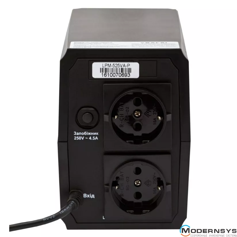Линейно – интерактивный ИБП/UPS LPM-525VA-P предназначен для обеспечения корректной работы бытовой, офисной или промышленной техники в условиях резких перепадов напряжения в сети. Еще одна важная функция ИБП/UPS LPM-525VA-P – это обеспечение кратковременной автономной работы устройств при отключении электрической энергии. Защитный функционал интерактивного источника бесперебойного питания ИБП LPM-525VA-P (367Вт) подразумевает: защиту от короткого замыкания, скачков напряжения, перегрузки, разряда и избыточного заряда батарей.