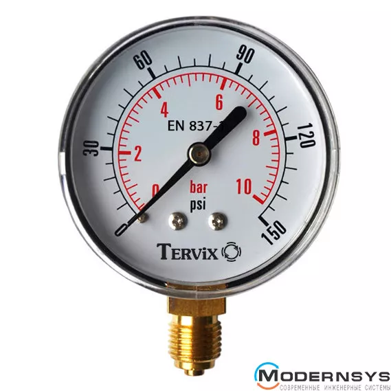 Технические характеристики: Манометр Tervix (Тервикс) Pro Line 100 0-6 бар 1/2" рад.