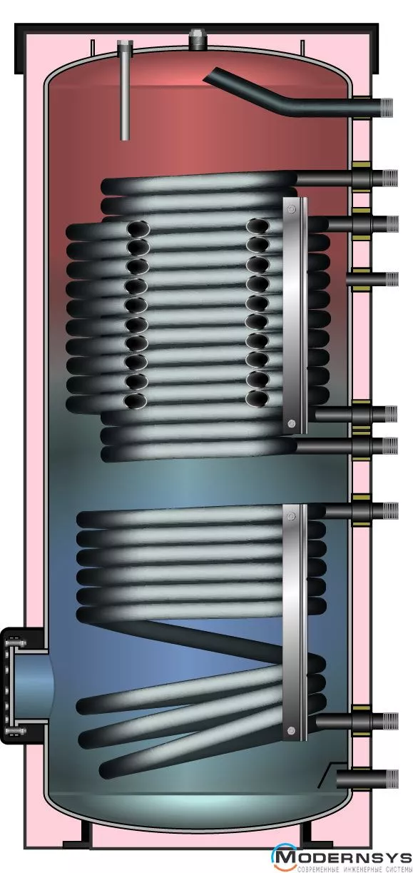 МАЙБЕС SSH-plus: бивалентный бак ГВС c увеличенной площадью первичного змеевика, съемная изоляция
