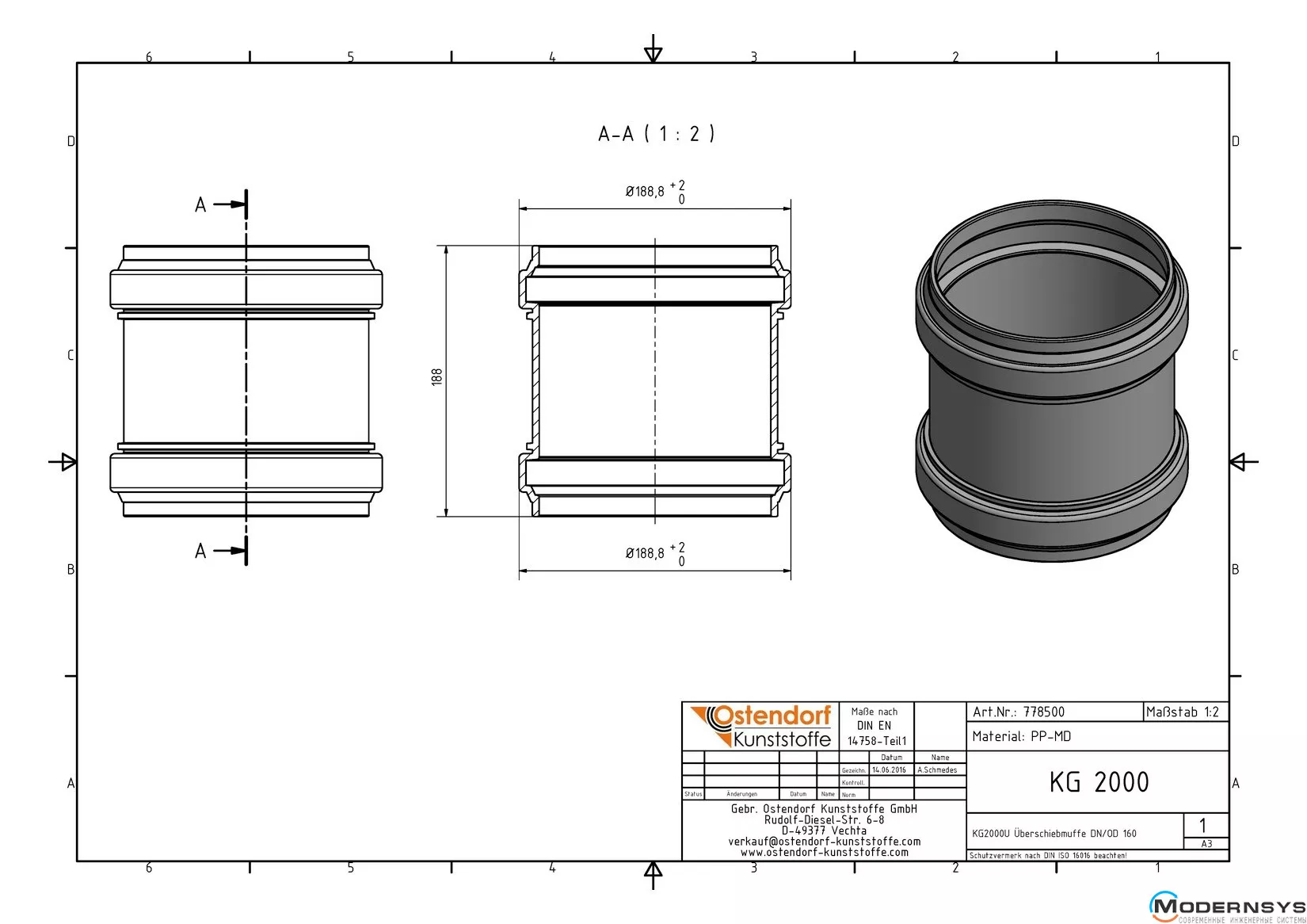 Муфта надвижная (ремонтная) PPR для наружной канализации Ostendorf KG2000U - это продукт, который превосходит ожидания в области канализационных систем. Она изготавливается из высококачественного полипропилена (PP), что придает ей невероятную прочность и надежность.