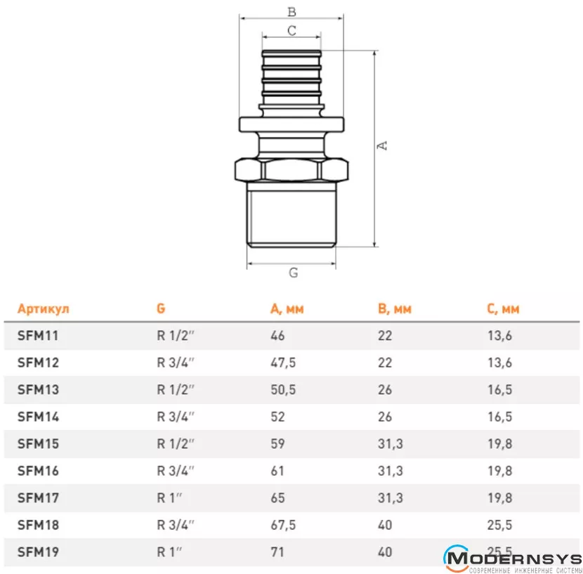 Технические характеристики: Муфта натяжная с наружной резьбой FADO (Фадо) SLICE NEW 32*3/4" С