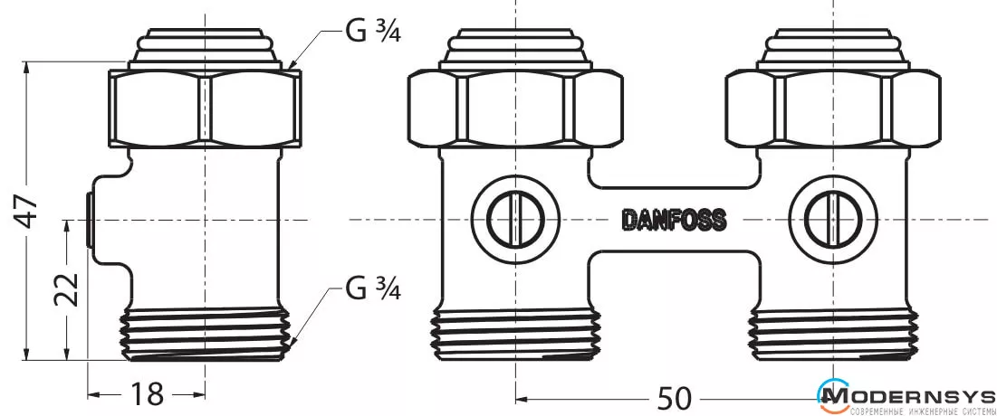 - Для присоединения к отопительным приборам с внутренней резьбой G 1/2 и наружной резьбой G 3/4.