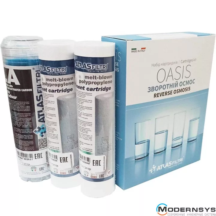 Технические характеристики: Набор Картридж Atlas Filtri (Атлас Фильтры)в для систем обратного осмоса NEW! OASIS DP (CPP+LA+CPP) Srl