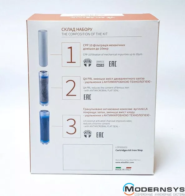 Набор Картридж Atlas Filtriв для тройных систем NEW! ЖЕЛЕЗНО СТОП (CPP+QA PRL+LA) Srl (LSP000003)