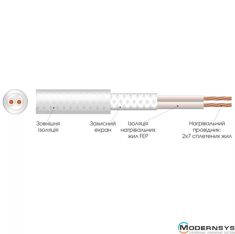 Удельная мощность 180 Вт на один квадратный метр. Класс защиты IPX7. Длина сетевого шнура питания 3 метра. Данные должны иметь защитный экран (алюминиевая фольга + провод 1х0,5мм), тефлоновую изоляцию греющих жил, дополнительную и наружную изоляции. Соответствует сертификатам международного уровня – BEAB, IEC, VDE, CE.