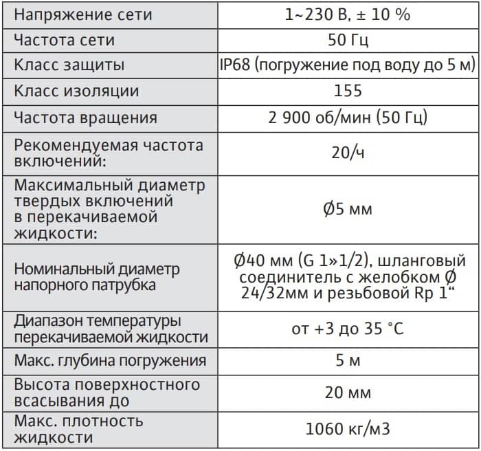 Технические характеристики: Насос дренажный Wilo (Вило) INITIAL DRAIN 10-7