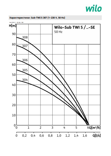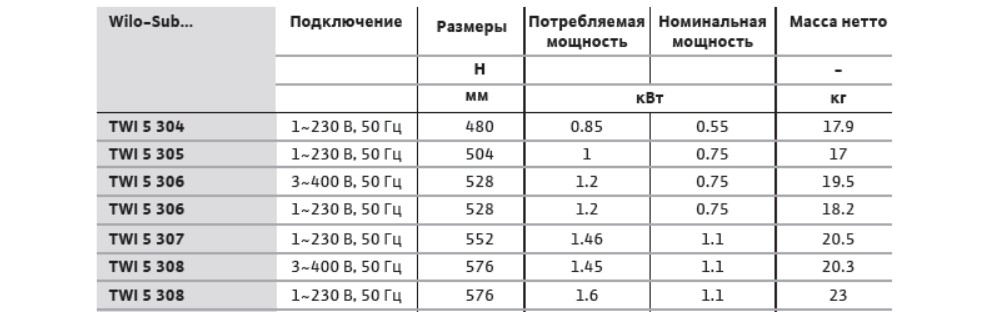 Технические характеристики: Насос погружной Wilo (Вило) TWI5 307 1 фаза