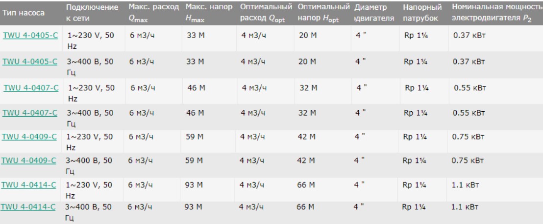 Технические характеристики: Насос погружной Wilo (Вило) TWU 4-0409-DM-C