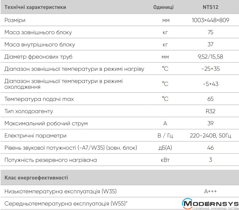 Технические характеристики: Насос тепловой FADO (Фадо) сплит 12 кВт