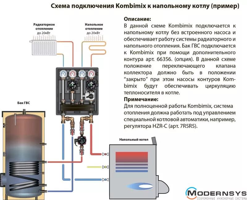 Универсально подходит для применения как с настенными так и с напольными котлами, мощностью до 40 кВт (по 20 кВт на каждый контур)