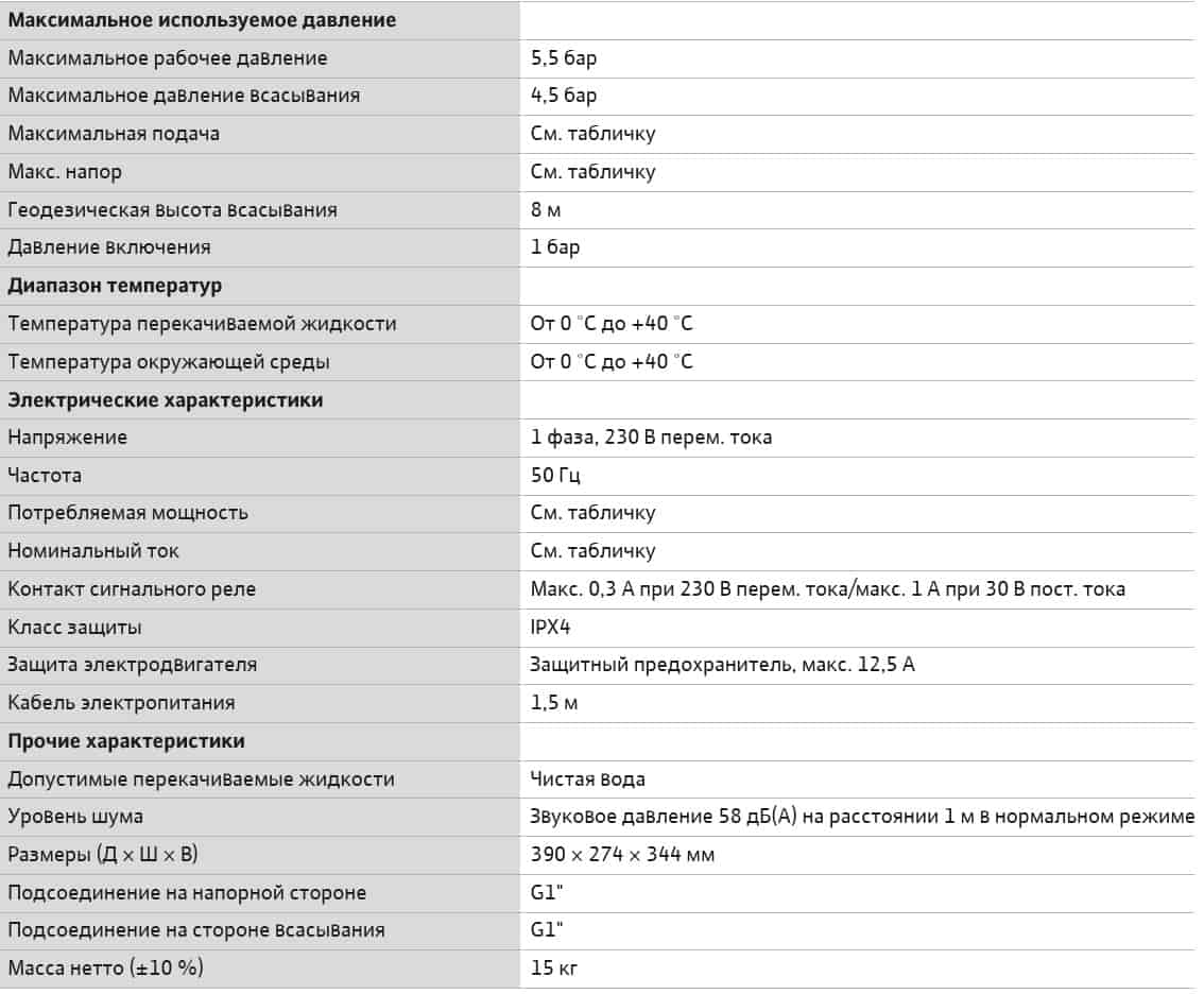 - Встроенные функции защиты (защита от сухого хода, распознавание превышения давления и перегрева, защита от избыточного тока, перенапряжения и пониженного напряжения)