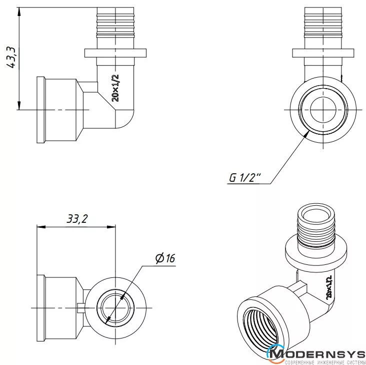 Описание: Натяжной уголок с внутренней резьбой FADO (Фадо) SLICE NEW 20*1/2" ВН
