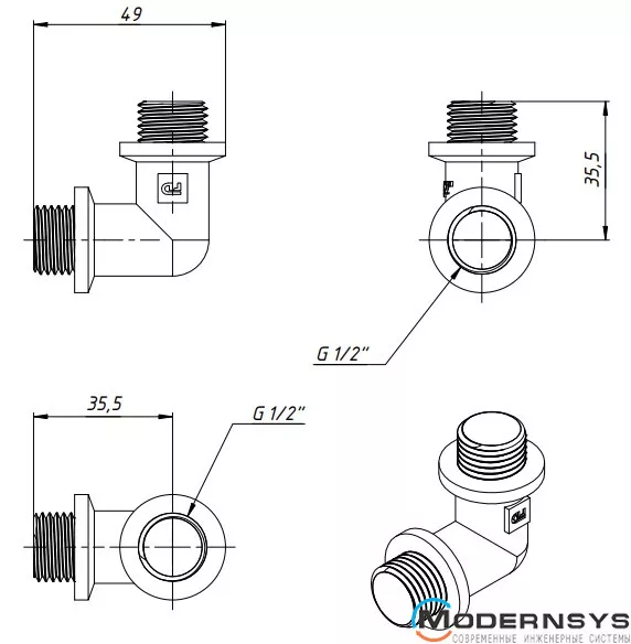 Технические характеристики: Никель Fado (Фадо) Уголок 1/2" HH