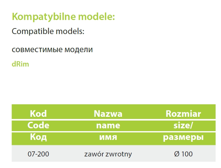 Технические характеристики: Обратный клапан AirRoxy (АирРокси) для drim, planet en Back valve dRim O 100