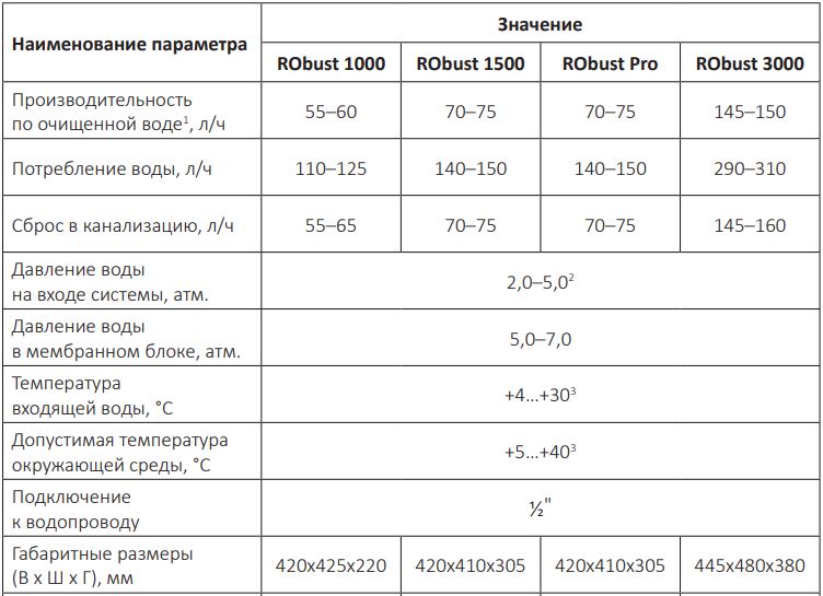 Технические характеристики для серии осмосов Ecosoft ROBUST