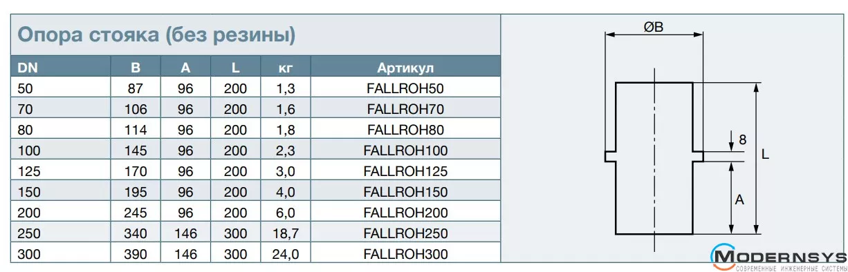 Технические характеристики: Опора стойки SML без резины DN 70 RSP (РСП) FALLROH70