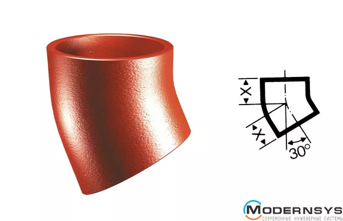 Отвод 30° позволяет сделать поворот трубопровода на угол 30°, или увеличить радиус его округления.