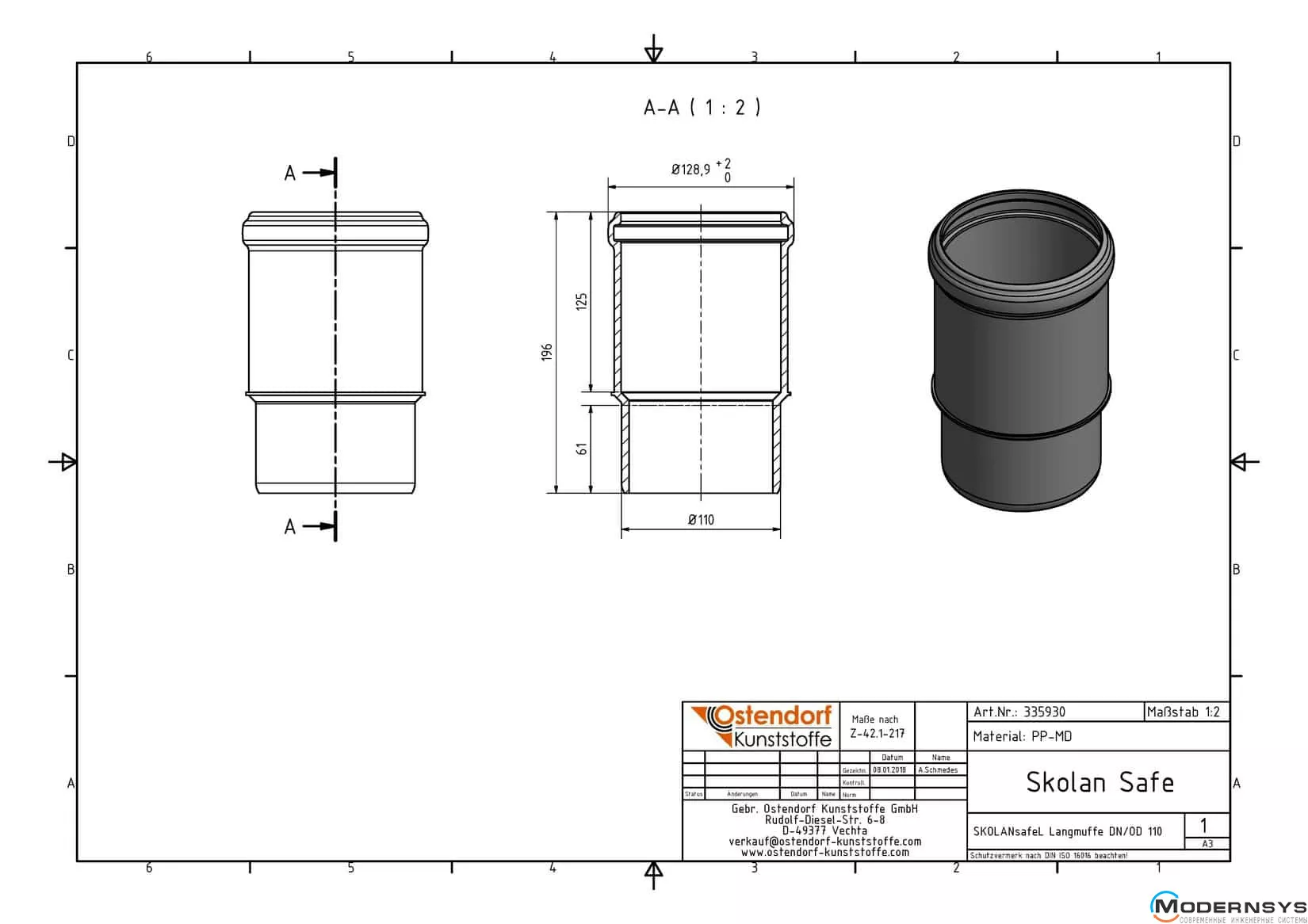 Технические характеристики: Патрубок компенсацинный Ostendorf (Остендорф) Skolan db 100 (335930)