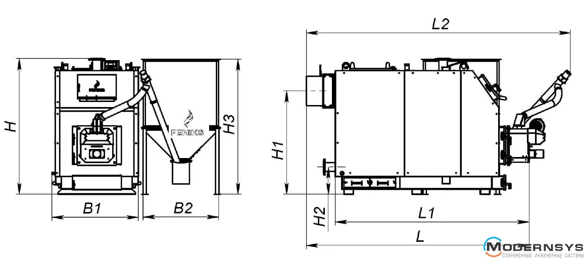 Описание: Пеллетный котел Feniks (Феникс) серия G 400 кВт с бункером 1000л.