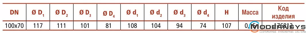 Технические характеристики: Переход PG MULTIQUICK 100x70