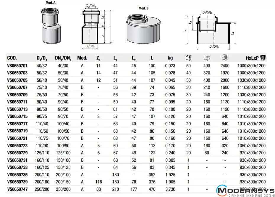 Технические характеристики: Переход Valsir (Валсир) Triplus эксцентричный Ø50/32