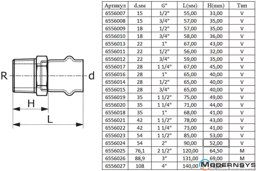 Технические характеристики: Переходник с наружной резьбой ASG (АСГ) INOX 15х1/2"
