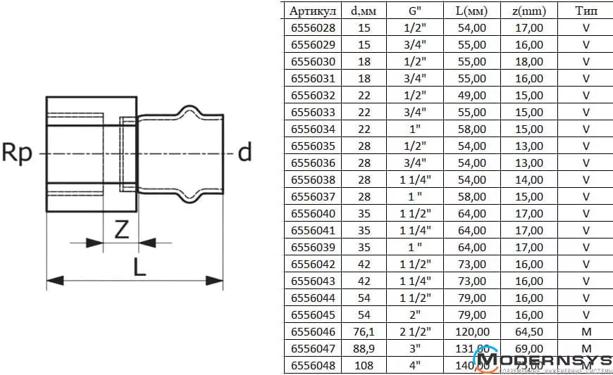 Технические характеристики: Переходник с внутренней резьбой ASG (АСГ) INOX 28x3/4"