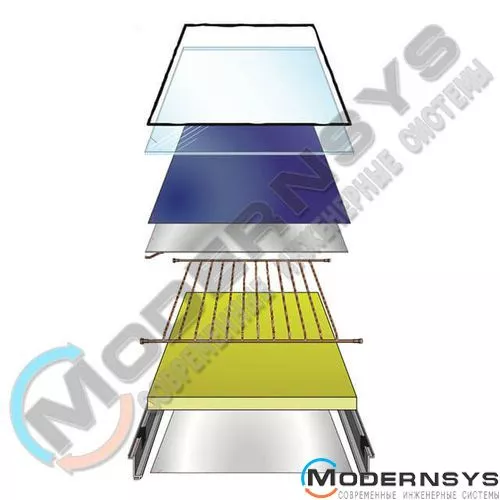 - Обеспечивает существенный вклад тепловой энергии в системы ГВС и отопления при наличии прямого солнечного излучения.