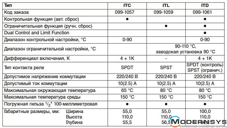 Технические характеристики: Погружной термостат Danfoss (Данфос) IТС
