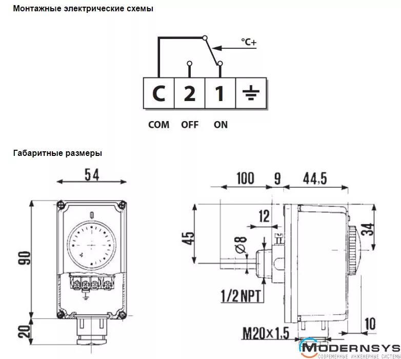 Принцип работы заключается в том, что при изменении температуры теплоносителя в трубе термостат замыкает или разрывает электрическую цепь в зависимости от величины выставленной температуры (при повышении температуры объем капиллярной жидкости увеличивается и контакты на термостате сжимаются, при снижении температуры - наоборот). Термостат оборудован контактами SPDT.
