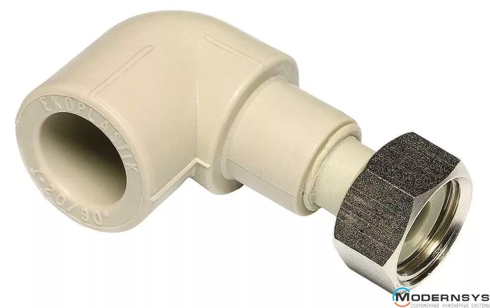 Технические характеристики: Полипропиленовый угол Ekoplastik (Экопластик) с накидной гайкой 20 мм х 3/4" (SKOM02025X)
