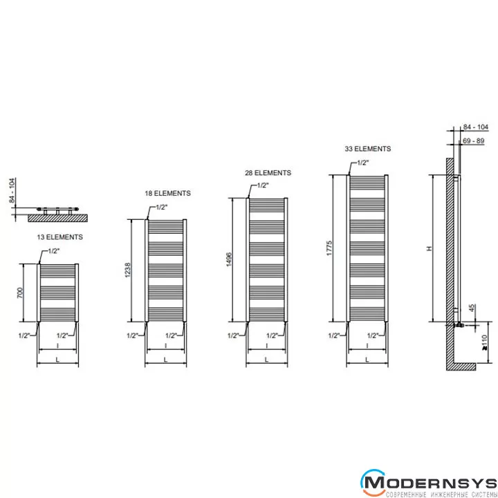 • Горизонтальные нагревательные элементы из окрашенной мягкой стали ø 22 мм