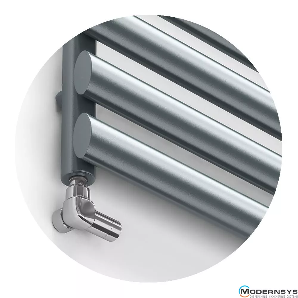 Благодаря уникальной технологии, отверстие для воды увеличен до 17 мм, что значительно улучшает поток воды, увеличивая тепловыделение полотенцесушителя и предотвращая закупоривание. В полотенцесушителях других торговых марок это отверстие обычно составляет 9 мм.