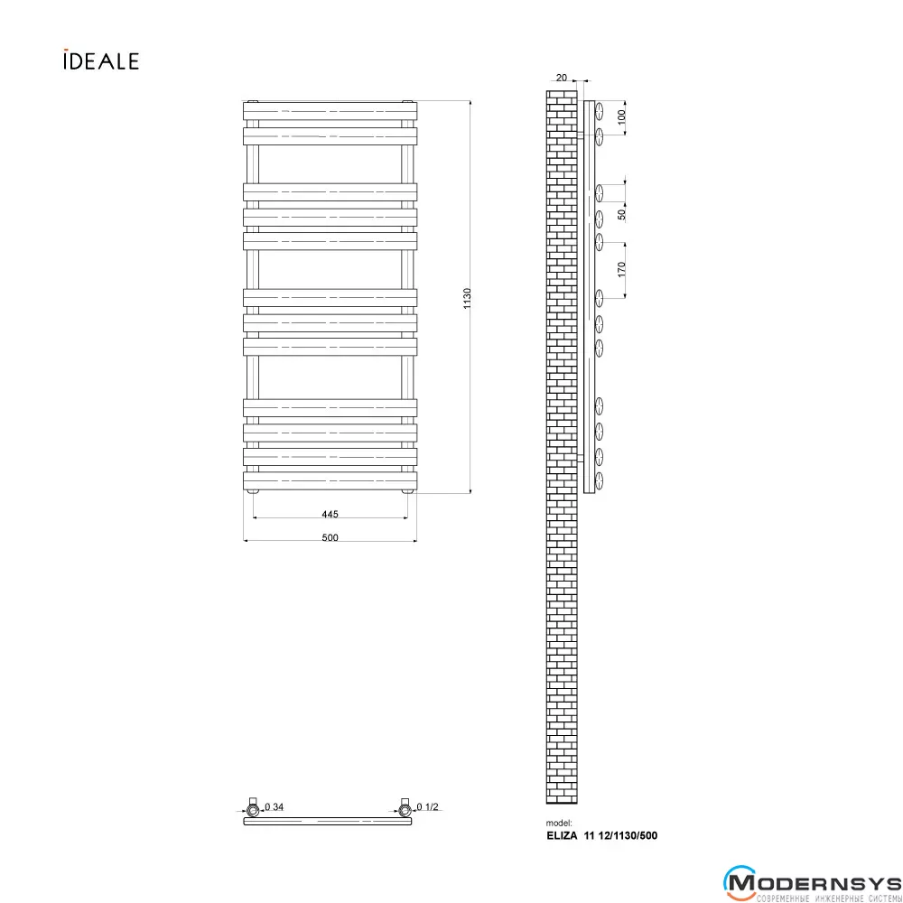 Технические характеристики: Полотенцесушитель дизайнерский Ideale Eliza 11 12/1130/500 антрацит