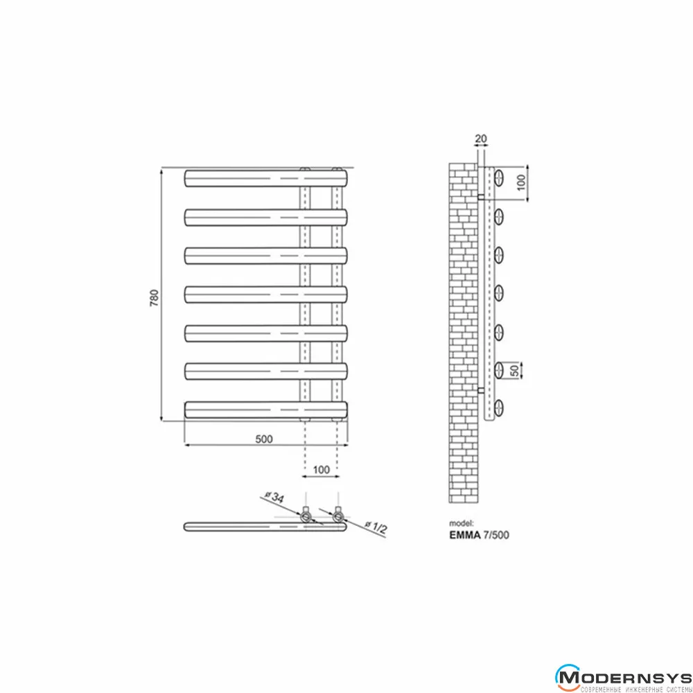 Технические характеристики: Полотенцесушитель дизайнерский Ideale Emma 11 7/780/500 черный