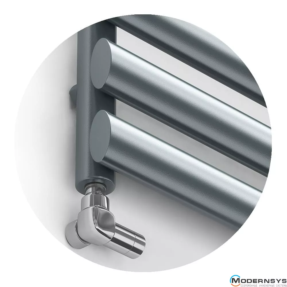 Благодаря уникальной технологии, отверстие для воды увеличен до 17 мм, что значительно улучшает поток воды, увеличивая тепловыделение полотенцесушителя и предотвращая закупоривание. В полотенцесушителях других торговых марок это отверстие обычно составляет 9 мм.
