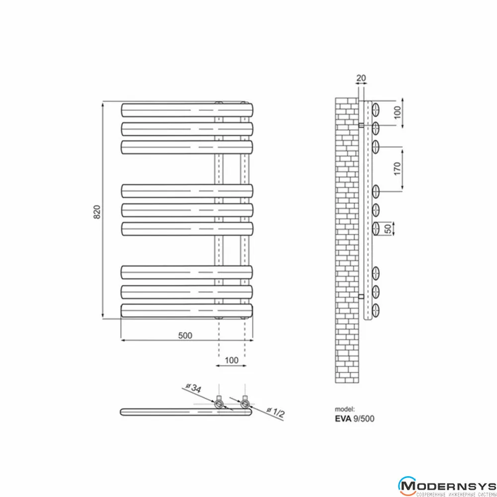 Технические характеристики: Полотенцесушитель дизайнерский Ideale Eva 11 9/820/500 черный