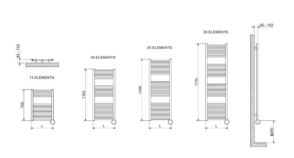 Технические характеристики: Полотенцесушитель электрический CORDIVARI (Кордивари) LISA 22 400 х 1160 мм 400 W ECO T01 NERO OPACO