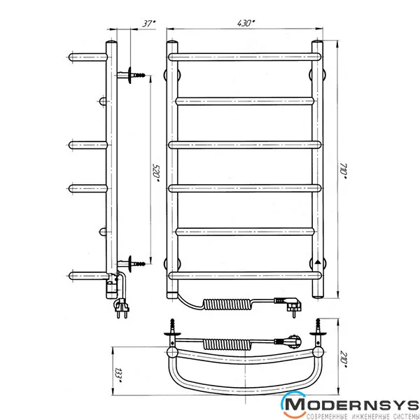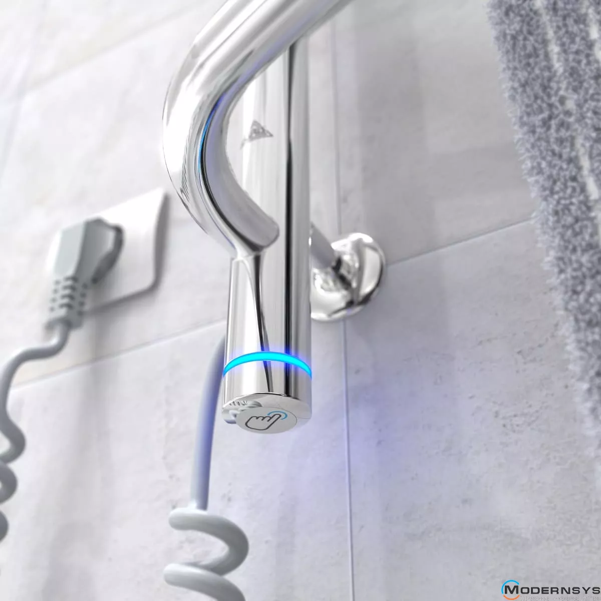 Весь полотенцесущитель изготовлен из высококачественной полированной нержавеющей стали AISI304. Блестящая поверхность изделия превосходно гармонирует с хромированной сантехникой, зрительно расширяя пространство, делая ванную комнату больше и светлее. Прибор оснащён евровилкой и скрученным кабелем питания предотвращающим провисание. Обращаем Ваше внимание, шнур питания расположен с левой или правой стороны полотенцесушителя.