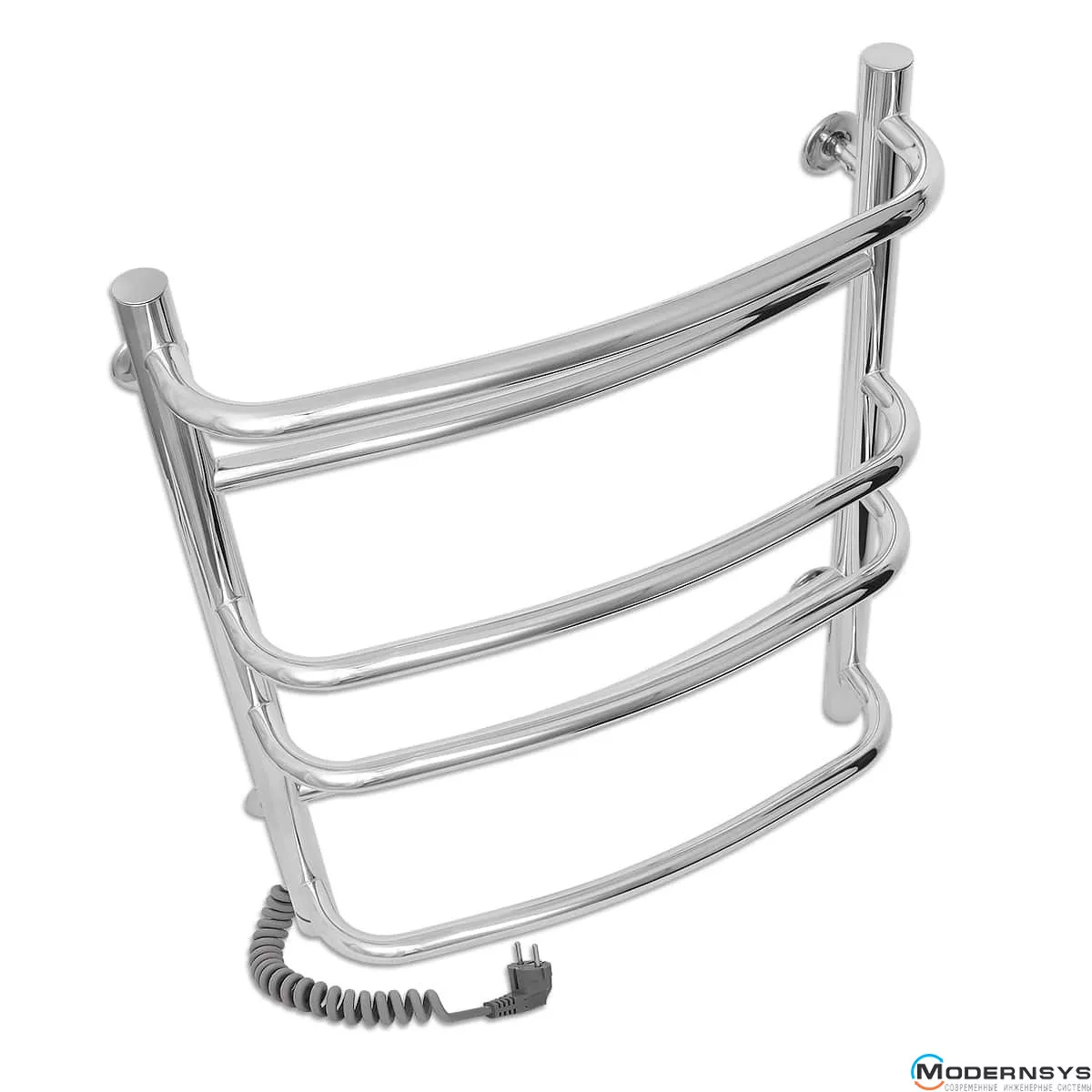 Весь полотенцесущитель изготовлен из высококачественной полированной нержавеющей стали AISI304. Блестящая поверхность изделия превосходно гармонирует с хромированной сантехникой, зрительно расширяя пространство, делая ванную комнату больше и светлее. Прибор оснащён евровилкой и скрученным кабелем питания предотвращающим провисание. Обращаем Ваше внимание, шнур питания расположен с левой или правой стороны полотенцесушителя.