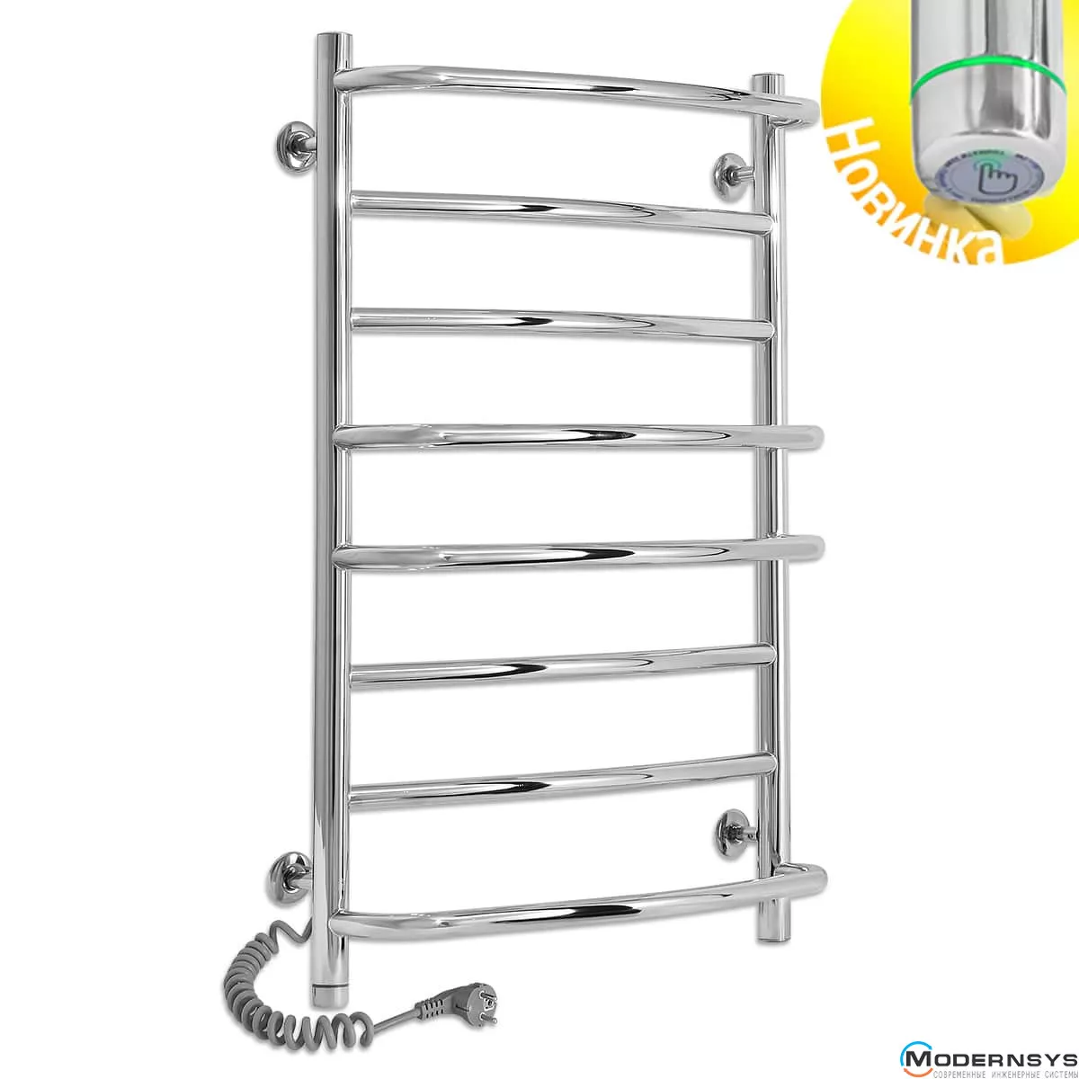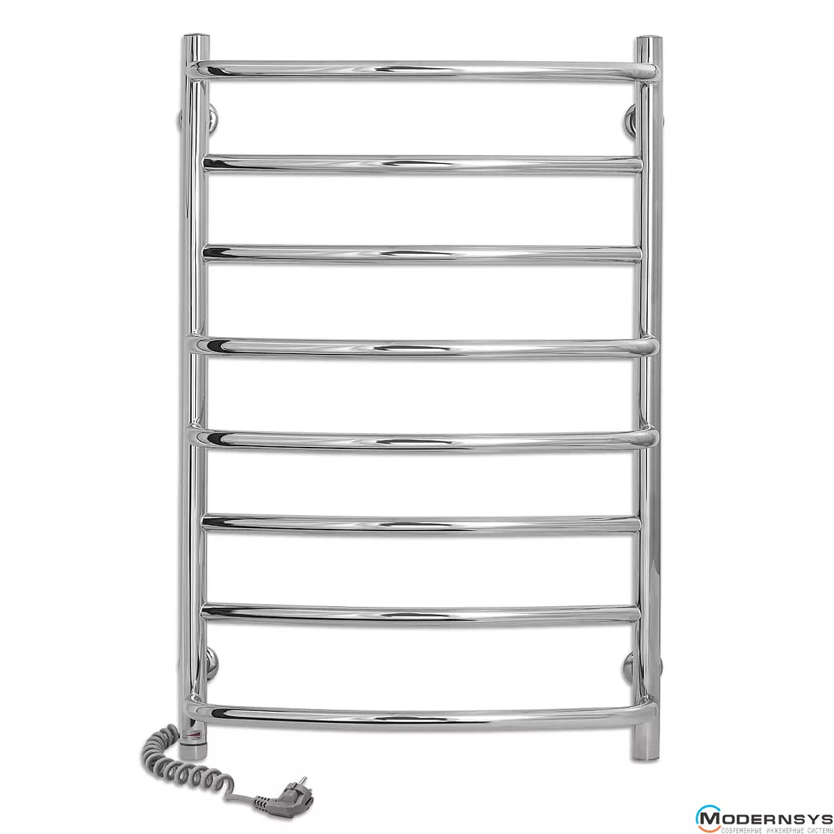 Весь полотенцесущитель изготовлен из высококачественной полированной нержавеющей стали AISI304. Блестящая поверхность изделия превосходно гармонирует с хромированной сантехникой, зрительно расширяя пространство, делая ванную комнату больше и светлее. Прибор оснащён евровилкой и скрученным кабелем питания предотвращающим провисание. Обращаем Ваше внимание, шнур питания расположен с левой или правой стороны полотенцесушителя.
