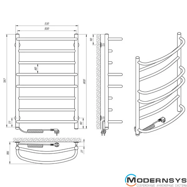 Технические характеристики: Полотенцесушитель электрический Laris (Ларис) Евромикс П8 500 х 800 левое подключение S3
