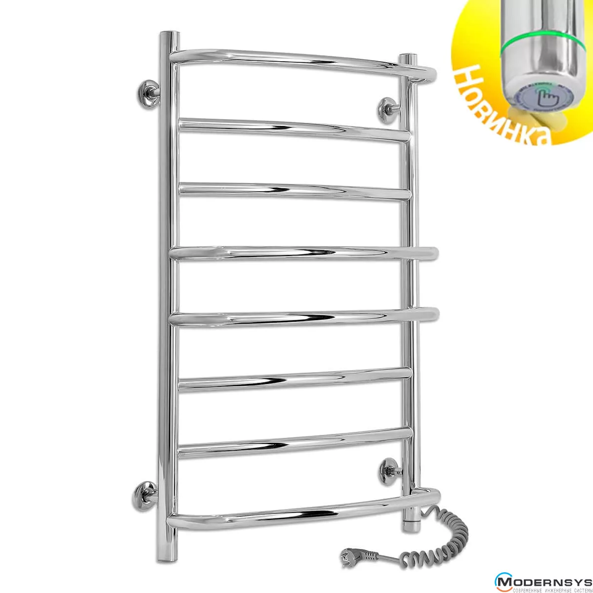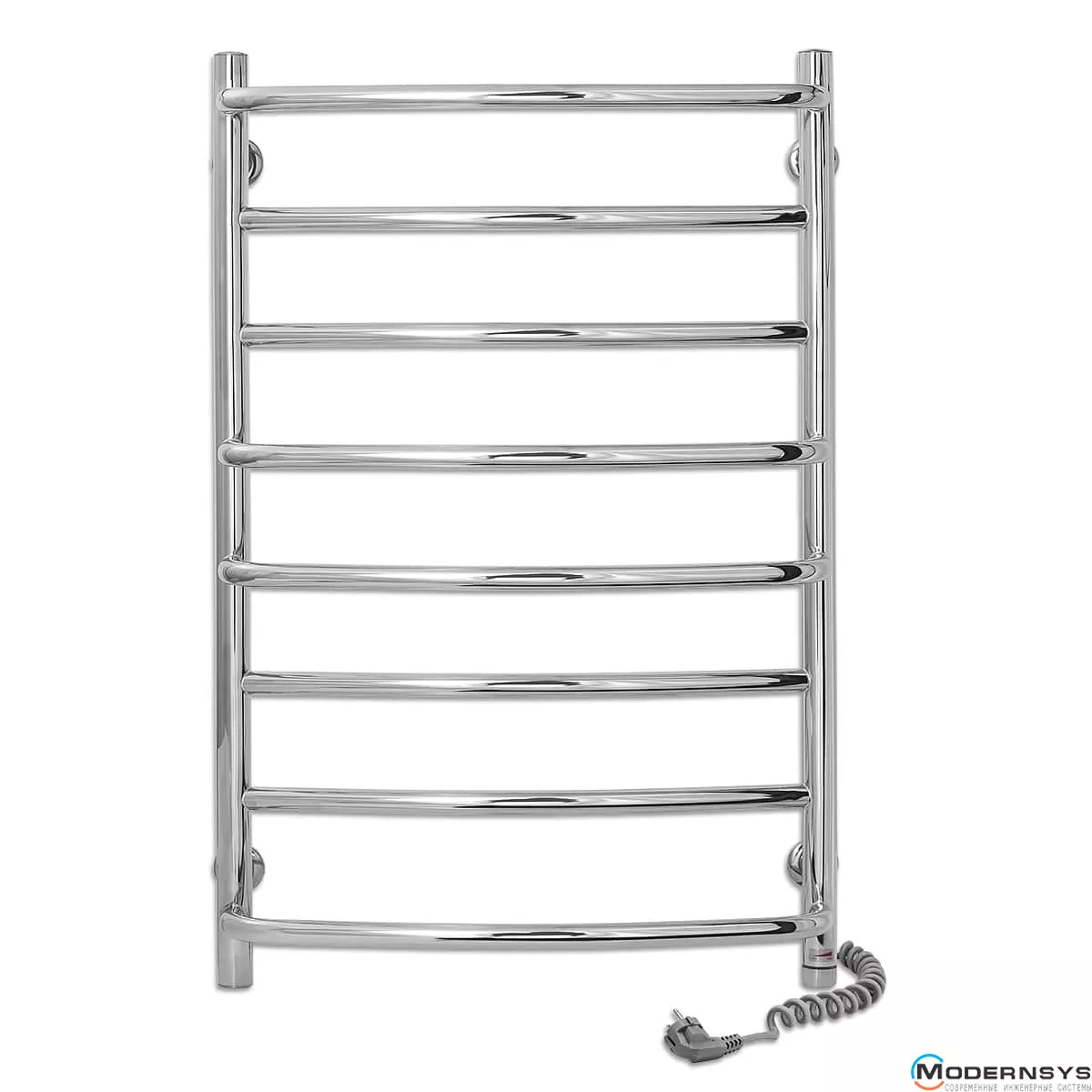 Весь полотенцесущитель изготовлен из высококачественной полированной нержавеющей стали AISI304. Блестящая поверхность изделия превосходно гармонирует с хромированной сантехникой, зрительно расширяя пространство, делая ванную комнату больше и светлее. Прибор оснащён евровилкой и скрученным кабелем питания предотвращающим провисание. Обращаем Ваше внимание, шнур питания расположен с левой или правой стороны полотенцесушителя.